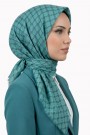 Sıcak tonundaki zemin üzerine zarif geometrik desenlerle tasarlanan bu model, minimal şıklığı seven kadınlar için ideal bir tercihtir. Dikişli kenar yapısı uzun süre formunu korur, kırışma yapmaz.