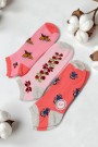 Renk/Desen: Pembe kelebekli x1, açık pembe çiçek dallı x1, koral figürlü x1; kontrast burun–topuk