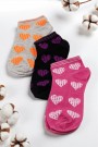 XGRİ POLO 3’lü Kadın Patik Çorap – Kalp Desenli